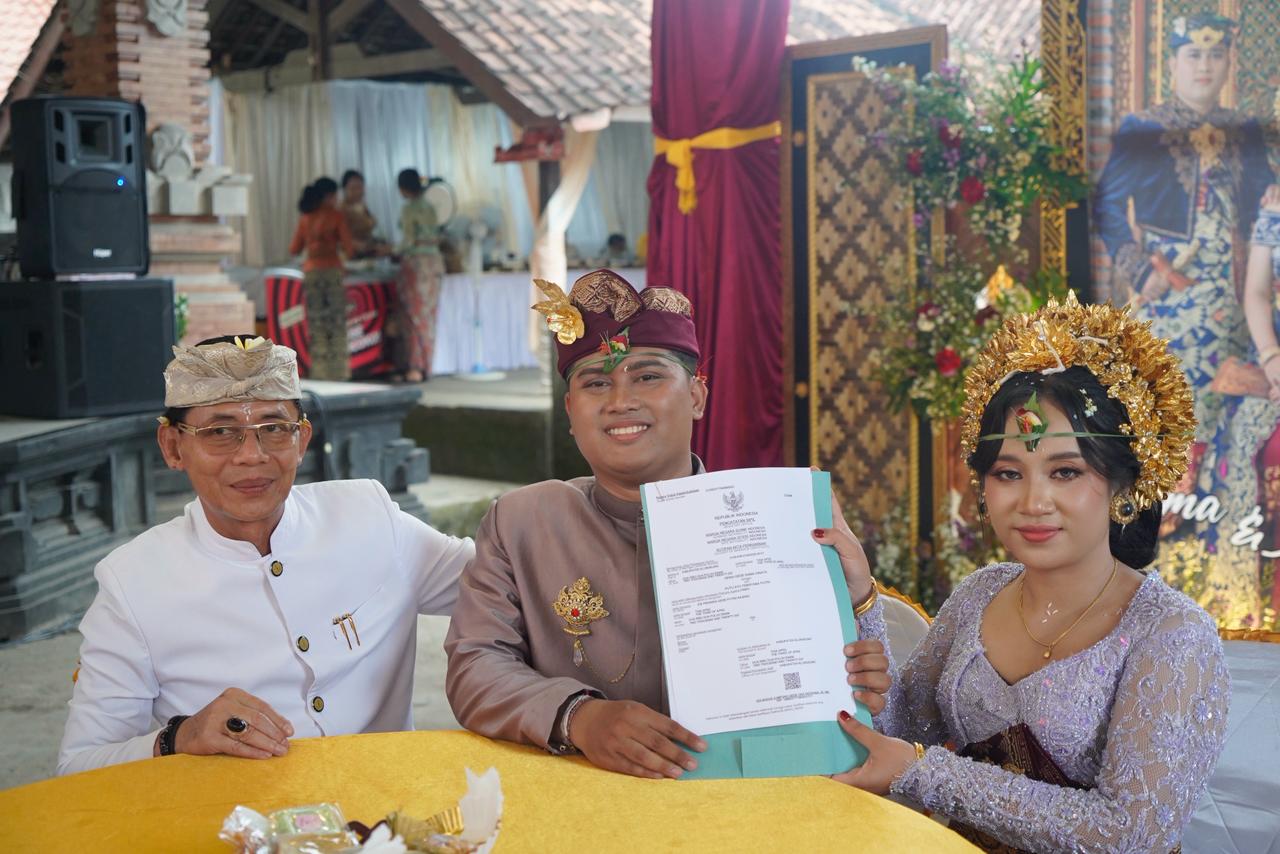 Selamat menempuh hidup baru, dumogi berbahagia selalu lan langgeng riwekasan menggarungi bahtera rumah tangga. Ucapan dan doa tersebut disampaikan Bupati Klungkung, I Made Satria saat menghadiri undangan resepsi pernikahan sekaligus menyerahkan Akta Perkawinan “Kawismara” disejumlah lokasi, Jumat (3/4).