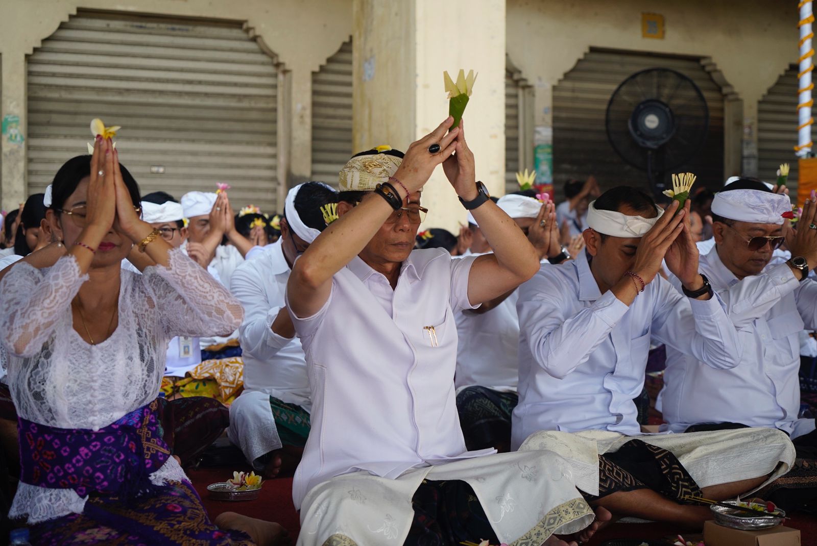 Bertepatan dengan hari suci Budha Kliwon Sinta (Pagarwesi), Bupati Klungkung, I Made Satria, bersama Ny. Eva Satria, Wakil Bupati Klungkung, Tjokorda Gde Surya Putra, menghadiri upacara Bhuta Yadnya Caru Lebur Gangsa Nawa Gempang yang dilaksanakan di area Pasar Galiran, Klungkung, Rabu (8/4/2026).